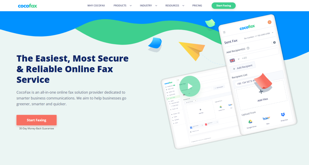 Formerly known as HelloFax, Dropbox Fax is a lightweight, web-based fax service seamlessly integrating with Dropbox, Google Drive, and OneDrive. You can easily create a company account and purchase extra fax numbers to assign to team members.