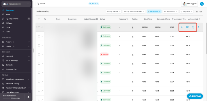 Bulk Actions (For Multiple Faxes)