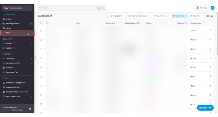 - Locate the fax you want to reschedule and click the three dots on the right side of the fax.